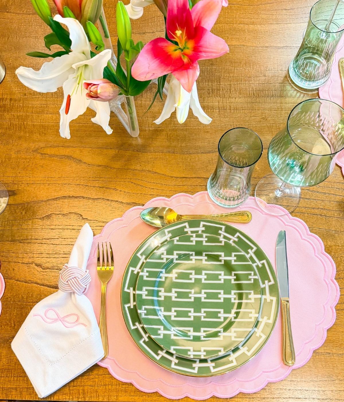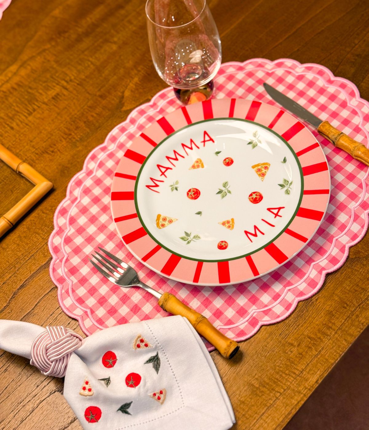 Com design versátil e encantador, o jogo americano dupla face permite diferentes composições: um lado em xadrez rosa claro, que transmite leveza e feminilidade, e o outro em rosa liso, ideal para ocasiões mais clássicas e elegantes. Essa versatilidade torna o conjunto perfeito tanto para o uso diário quanto para momentos especiais.