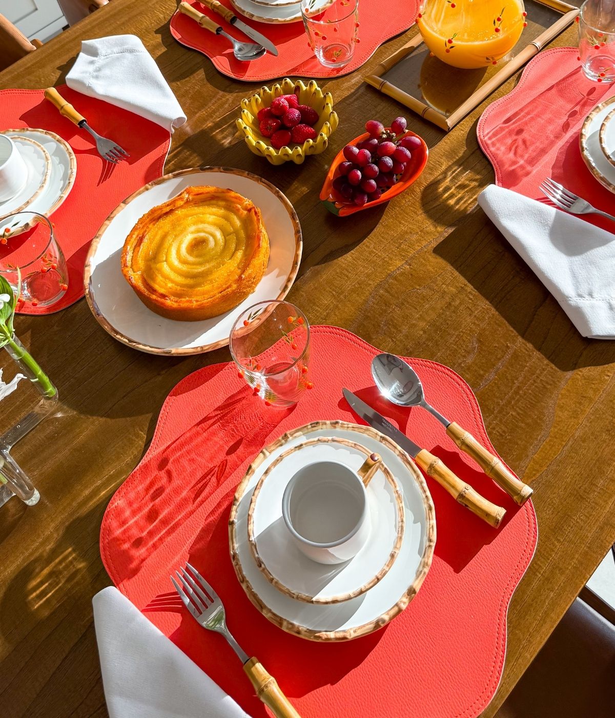 Com acabamento dupla face, nas cores laranja vibrante e bege neutro, o jogo americano oferece duas opções de composição em um único item, permitindo variar o estilo da mesa com facilidade do toque alegre ao tom mais clássico.
