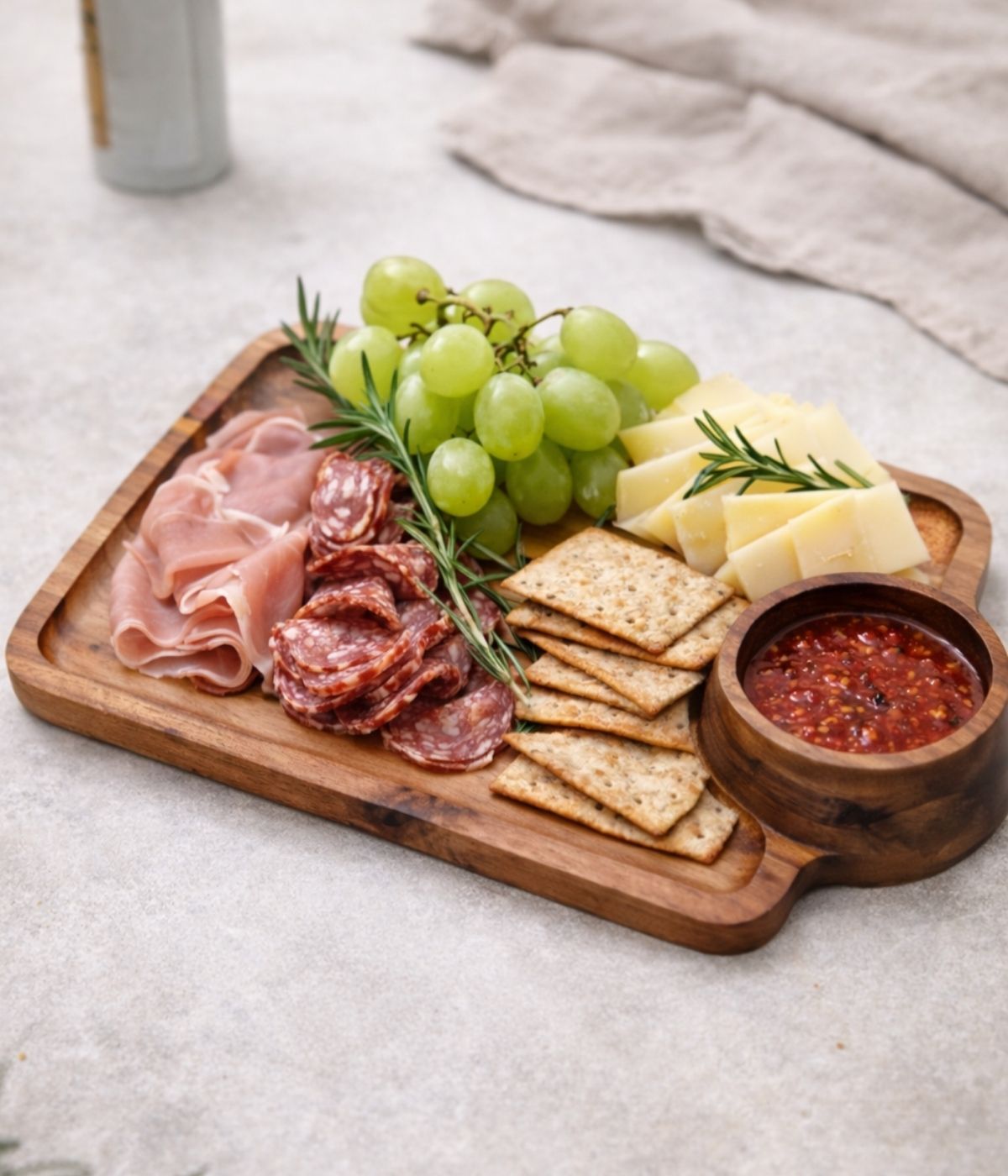 Ideal para queijos, frios, pães, frutas, petiscos ou até pequenas porções de pratos, a tábua une praticidade e sofisticação em uma peça única. Produzida em madeira de acácia, um material nobre e resistente, garante durabilidade, além de um acabamento natural que valoriza a estética da mesa posta.